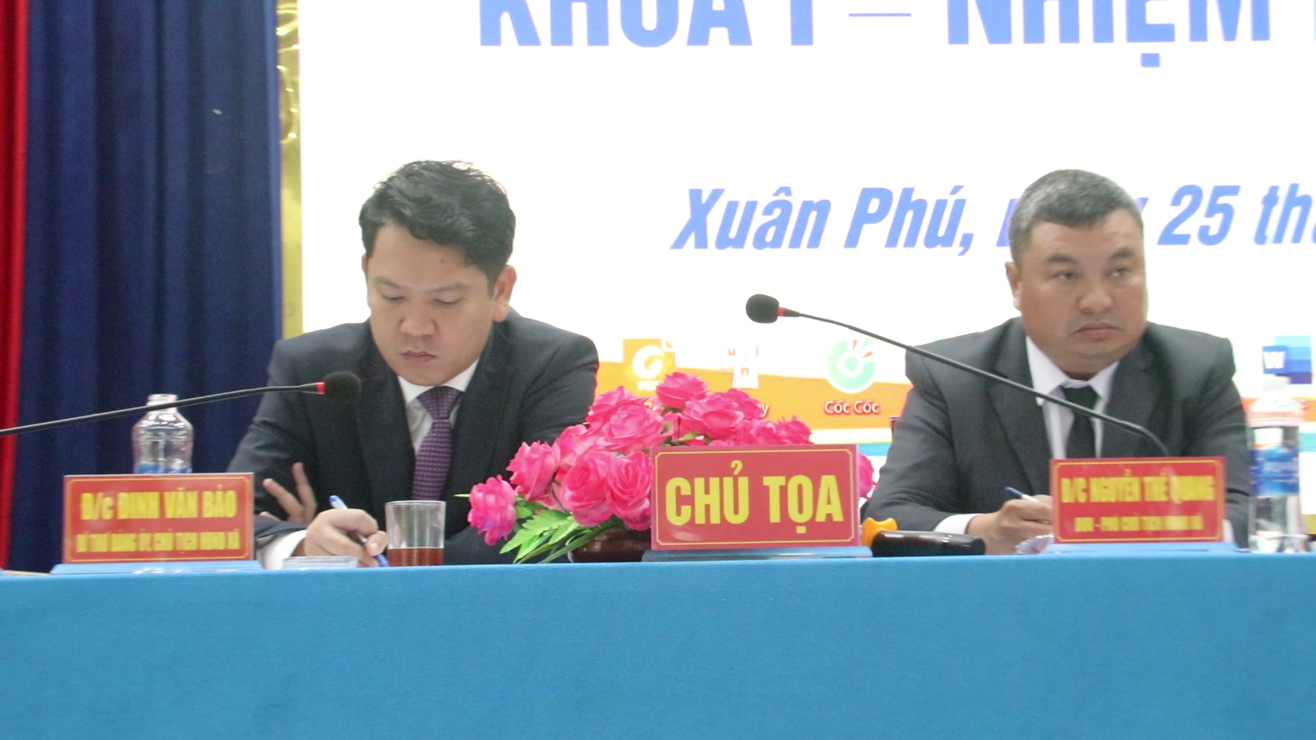 Đ.c Đinh Văn Bảo – Bí thư Đảng ủy, Chủ tịch HĐND xã Xuân Phú, Đ.c Nguyễn Thế Quang - PCT HĐND xã Xuân Phú chủ trì kỳ họp