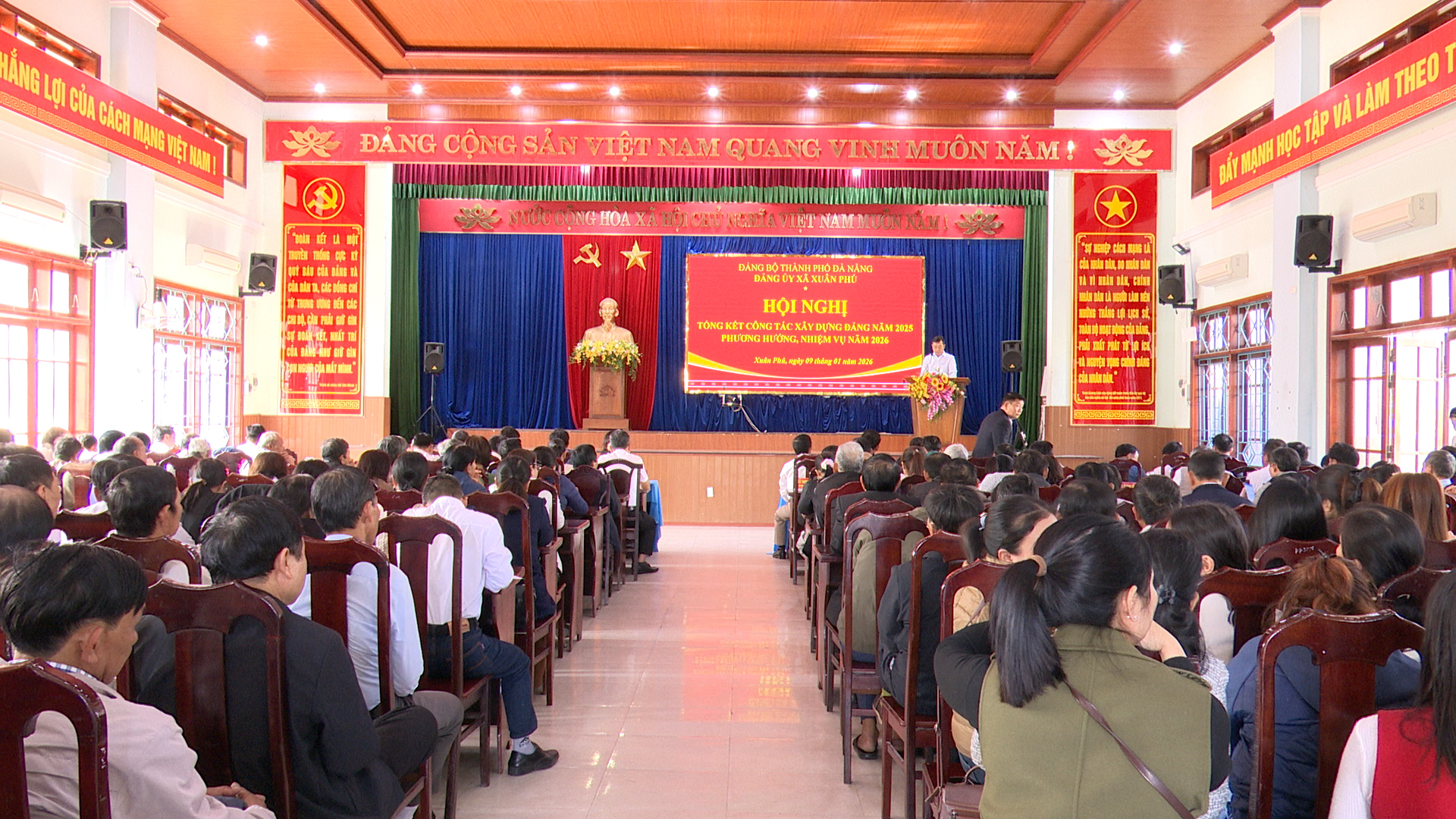 Năm 2025, trong bối cảnh khối lượng công việc lớn, nhiều khó khăn, thách thức, Ban Chấp hành và Ban Thường vụ Đảng ủy xã đã phát huy tinh thần đoàn kết, tập trung lãnh đạo toàn diện các mặt công tác. Nổi bật là việc tổ chức thành công Đại hội đại biểu Đảng bộ xã Xuân Phú lần thứ I, nhiệm kỳ 2025–2030, đảm bảo đúng tiến độ, nội dung theo chỉ đạo của Trung ương và Thành ủy. Sau Đại hội, Ban Thường vụ Đảng ủy đã kịp thời phân công nhiệm vụ cho các đồng chí Ủy viên Ban Chấp hành, Ban Thường vụ và Thường trực Đảng ủy, bảo đảm bộ máy hoạt động thông suốt, hiệu quả.