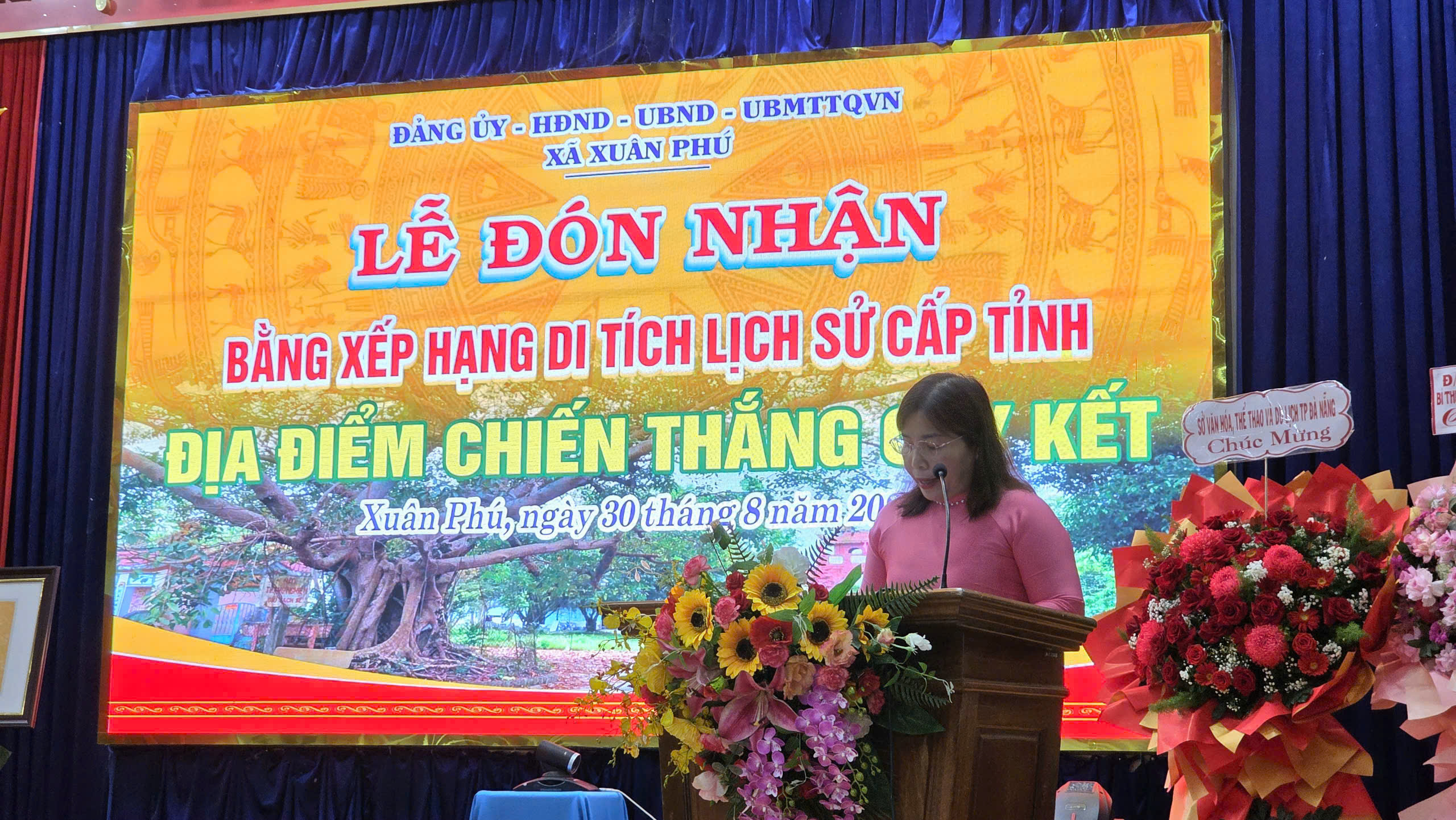 Đ.c Nguyễn Thị Anh Thi - Phó Chủ tịch UBND thành phố trao Bằng xếp hạng di tích lịch sử cấp tỉnh Địa điểm Chiến thắng Cây Kết cho xã Xuân Phú