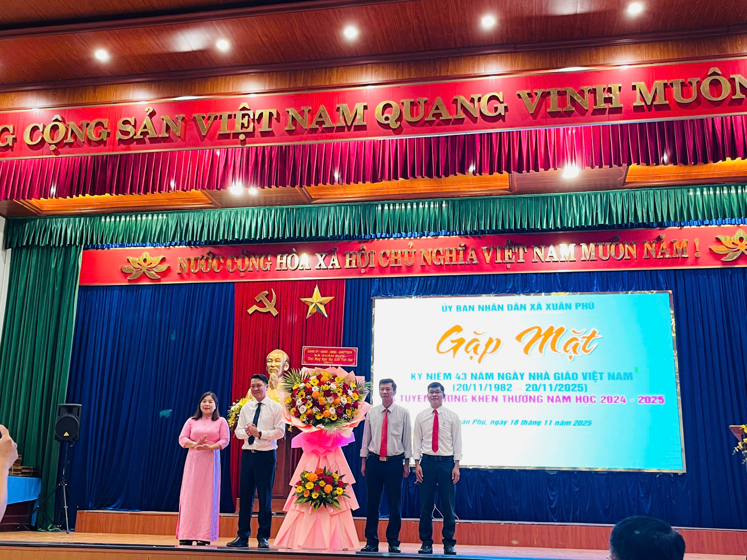 Tại buổi gặp mặt, lãnh đạo Đảng uỷ, HĐND, UBND và UBMTTQVN xã Xuân Phú đã trang trọng tặng hoa chúc mừng Phòng Văn hoá – Xã hội xã. Đây là sự ghi nhận đối với những đóng góp quan trọng của đơn vị trong việc tham mưu, tổ chức và triển khai hiệu quả các hoạt động giáo dục – đào tạo trên địa bàn xã; đồng thời thể hiện sự quan tâm sâu sắc của cấp uỷ, chính quyền đối với sự nghiệp trồng người, động viên đơn vị tiếp tục phát huy vai trò, nâng cao chất lượng công tác trong thời gian tới.