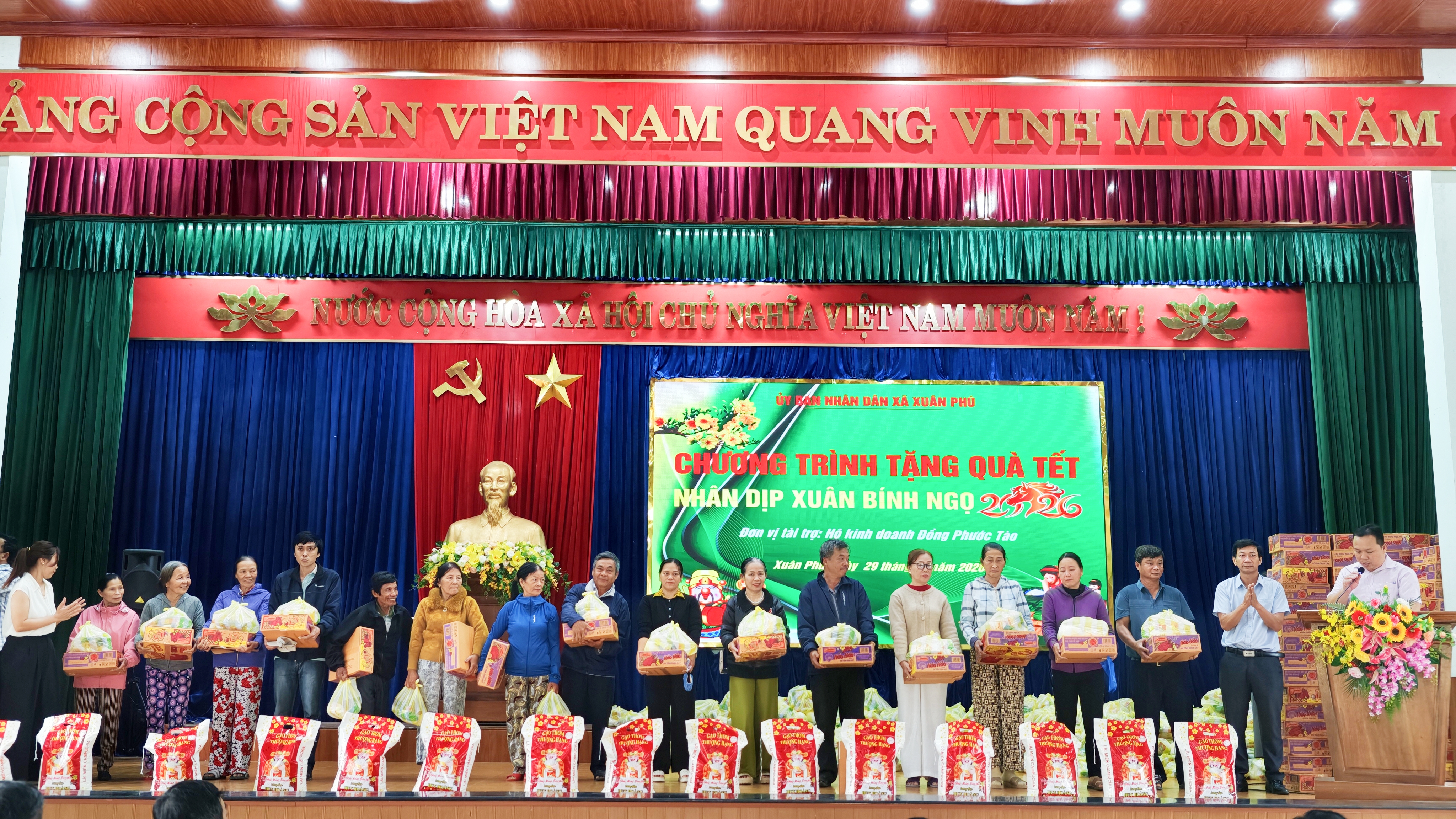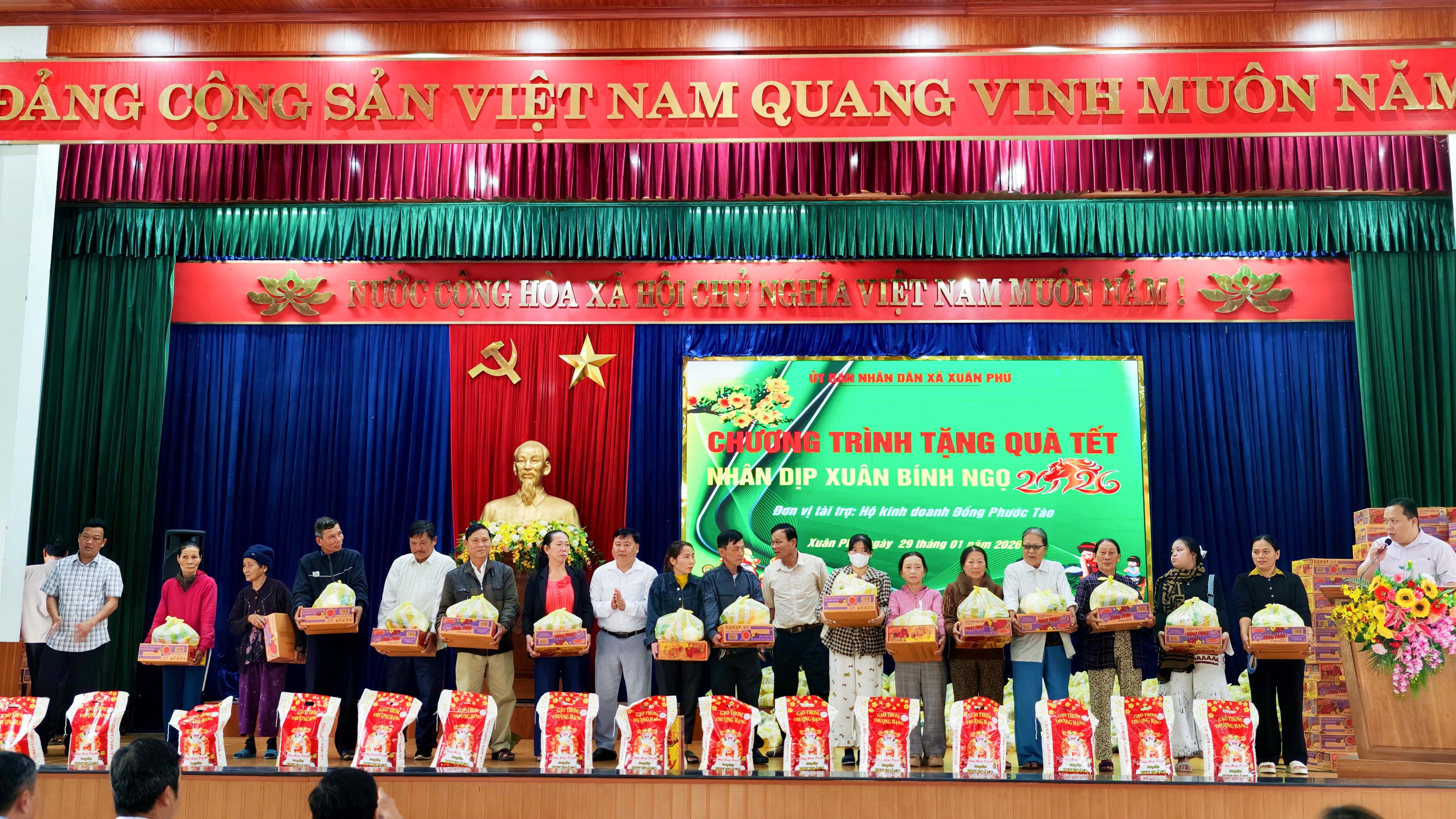 Đại diện lãnh đạo xã Xuân Phú, đồng chí Phó Chủ tịch UBND xã Lê Công Phu đã bày tỏ sự trân trọng, ghi nhận và gửi lời cảm ơn sâu sắc đến hộ kinh doanh Đồng Phước Tào vì nghĩa cử cao đẹp, đã đồng hành cùng địa phương trong công tác chăm lo an sinh xã hội, góp phần để mọi người, mọi nhà đều có thêm niềm vui và hơi ấm trong những ngày Tết cổ truyền của dân tộc.