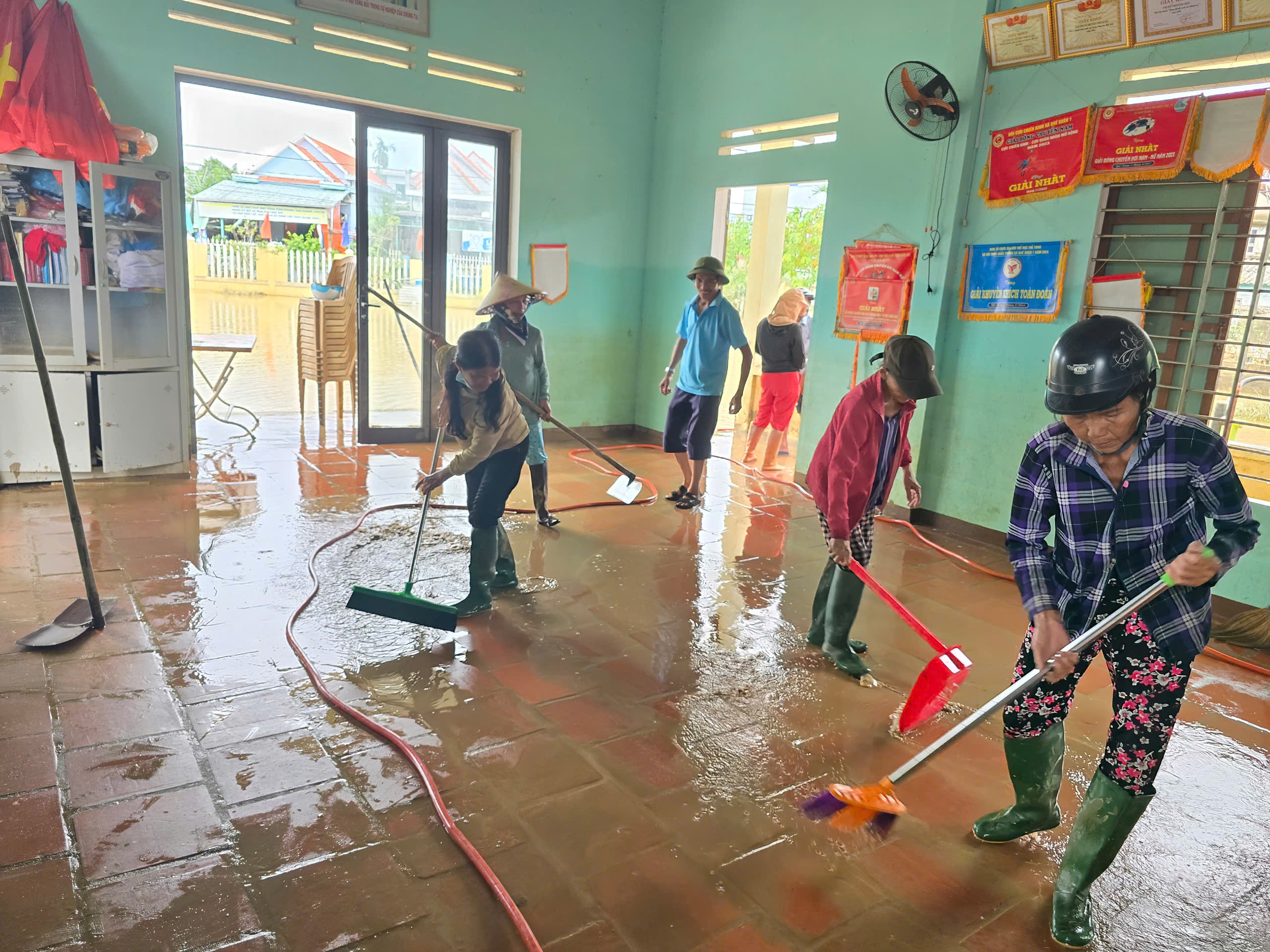 Cùng thời điểm, nhân dân địa phương tích cực tham gia dọn dẹp nhà sinh hoạt thôn và khu vực công cộng, quét dọn, sắp xếp gọn gàng các vật dụng, thu gom rác thải sau lũ, góp phần làm sạch đẹp cảnh quan và nhanh chóng ổn định đời sống cộng đồng.