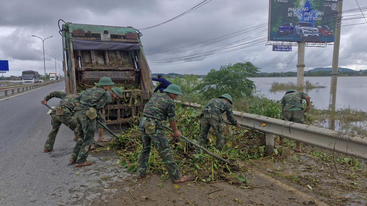 Ngay sau khi đợt lũ vừa rút, sáng ngày 31/10, chính quyền xã Xuân Phú đã phối hợp Trung đoàn 885 và Lữ đoàn Tăng thiết giáp 574 cùng ra quân dọn vệ sinh môi trường, thu gom bèo, rác thải trên tuyến Quốc lộ 1A và các tuyến đường chính. Các lực lượng đã thu gom hàng trăm mét khối bèo, rác thải dạt vào ven đường, nạo vét bùn đất, khơi thông cống rãnh thoát nước, quét dọn và phát quang cây cỏ hai bên đường, góp phần đảm bảo an toàn giao thông và cảnh quan môi trường sau lũ.