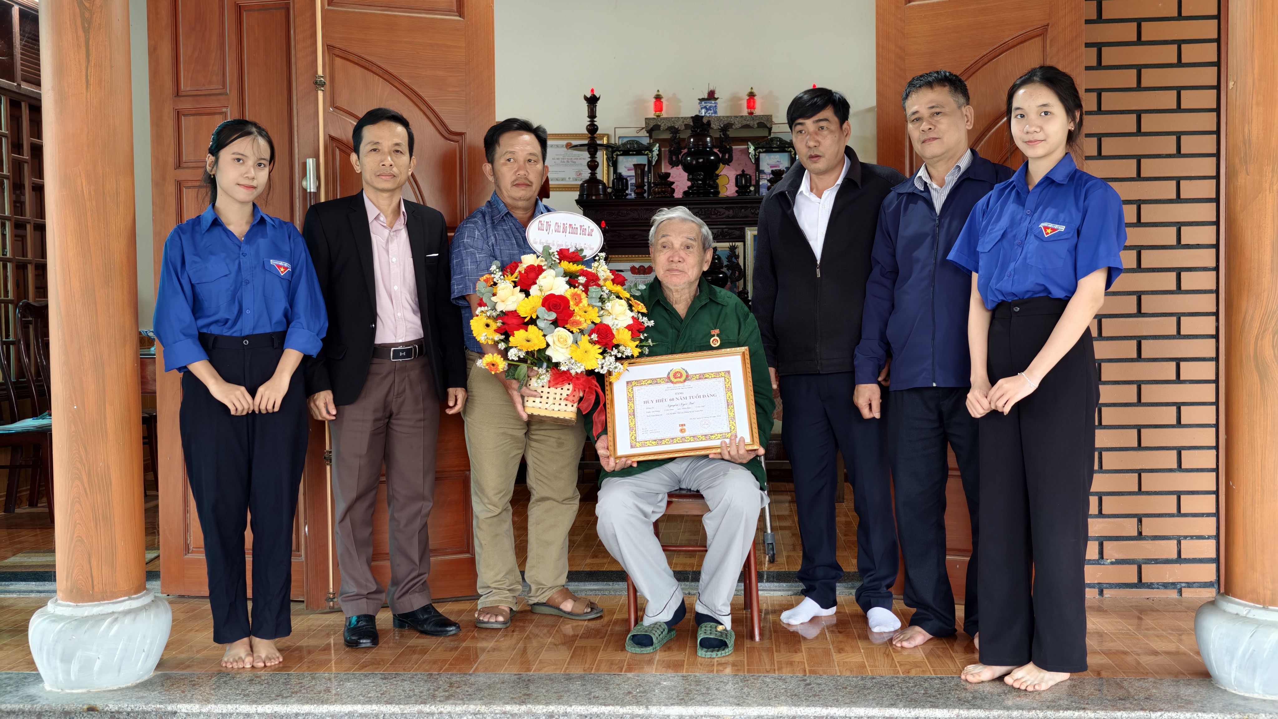 Các đồng chí lãnh đạo xã trao Huy hiệu Đảng cho các đảng viên từ 30 năm đến 60 năm tuổi Đảng.