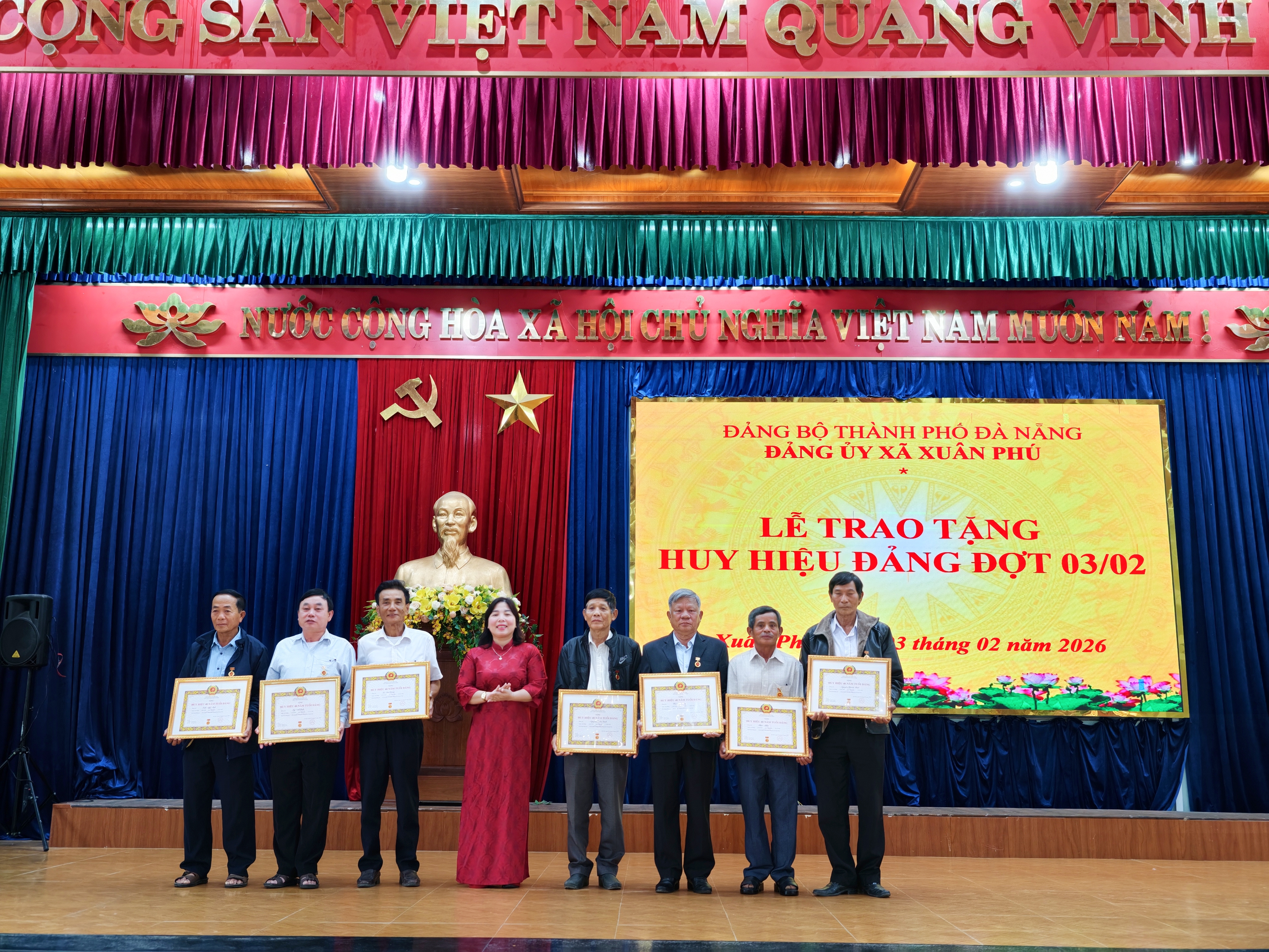 Nhân dịp này, trong đợt trao tặng Huy hiệu Đảng ngày 03/02, Đảng bộ xã Xuân Phú vinh dự có 17 đảng viên được nhận Huy hiệu Đảng, gồm: 01 đồng chí 60 năm tuổi Đảng; 03 đồng chí 55 năm tuổi Đảng; 03 đồng chí 45 năm tuổi Đảng; 08 đồng chí 40 năm tuổi Đảng và 02 đồng chí 30 năm tuổi Đảng. Đây là sự ghi nhận cao quý của Đảng đối với quá trình cống hiến, rèn luyện và trưởng thành của các đảng viên.