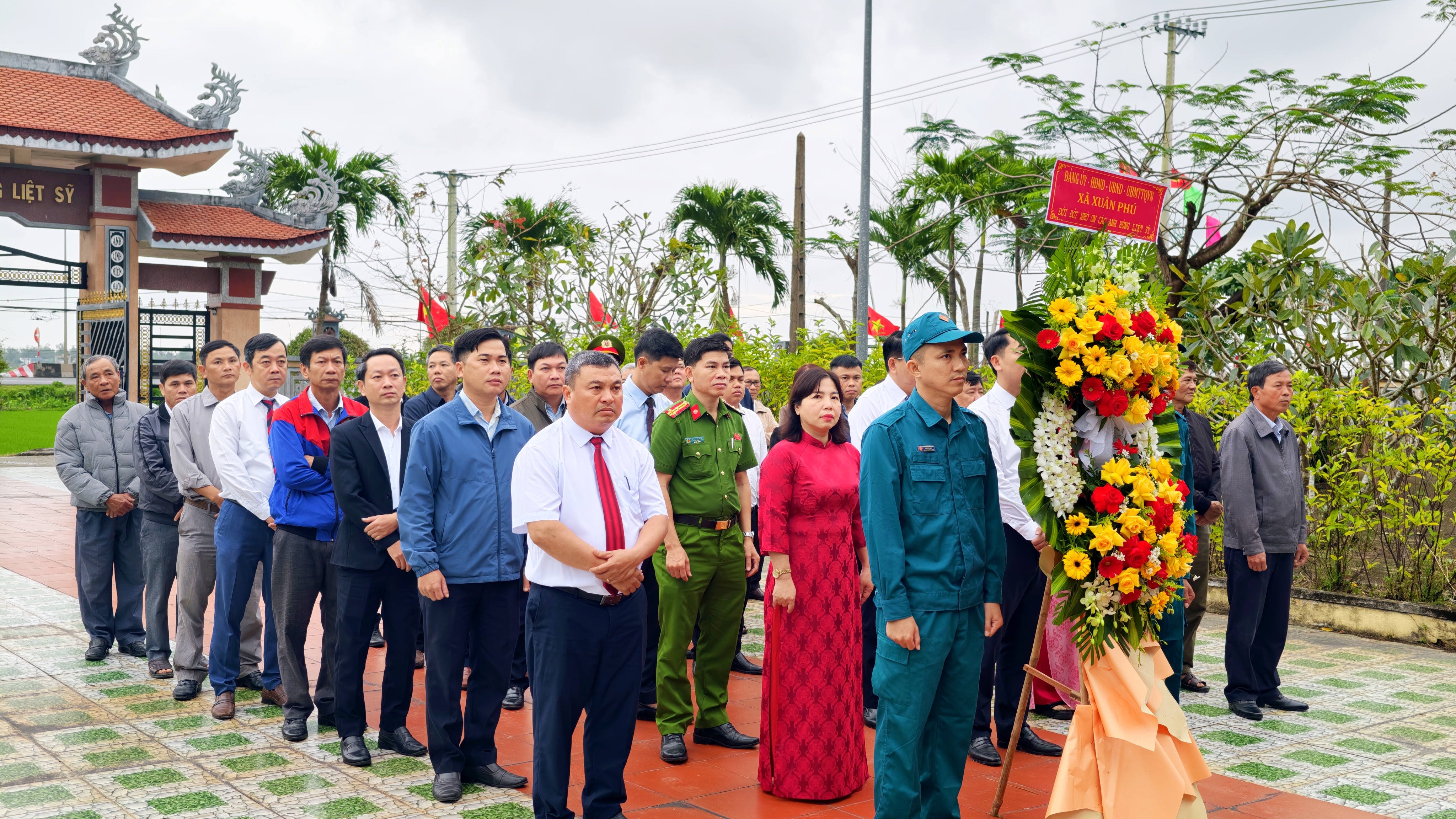 Các đồng chí lãnh đạo xã cùng đại diện các ban, ngành, đoàn thể dâng hoa, viếng hương tại Khu di tích Dốc Tâng và các nhà bia ghi danh các Anh hùng liệt sĩ.